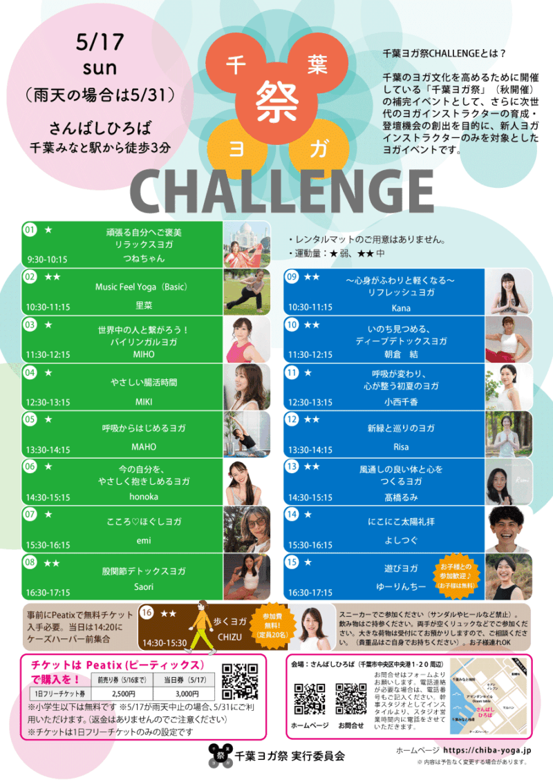 2026/1/30 千葉ヨガ祭CHALLENGEの登壇インストラクターが決定しました。
