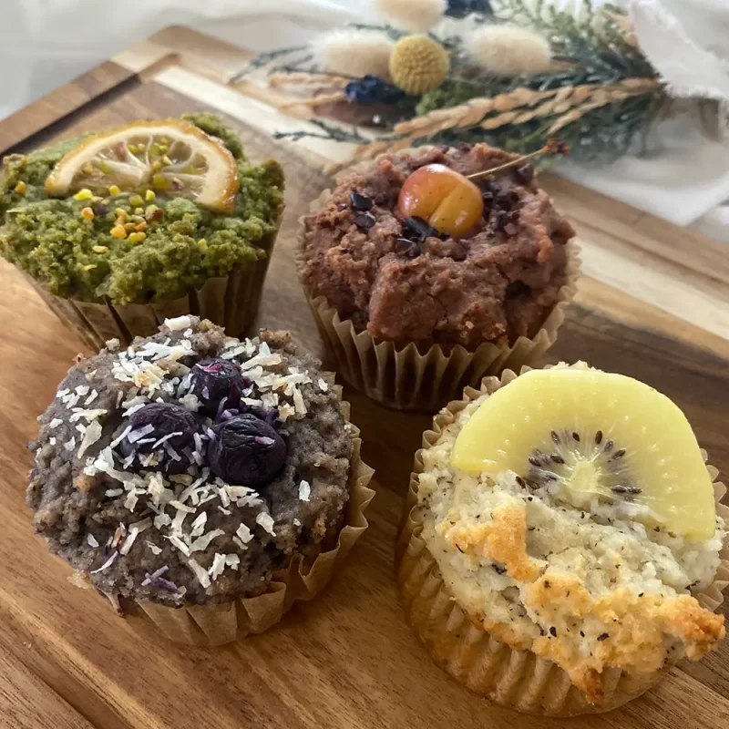 むぎゅもっちりの自家製酵母ベーグルを焼いています。寺田本家の玄米酒粕酵母と季節の果物酵母でゆっくり発酵させた、味わい深いベーグルです。 [自家製酵母・国産小麦・オーガニック材料使用] [乳・卵・油脂・白砂糖・添加物不使用] [すべて植物性プラントベース] 米粉スコーン・オーガニックグラノラバーなど、からだにやさしいおやつもお持ちします。