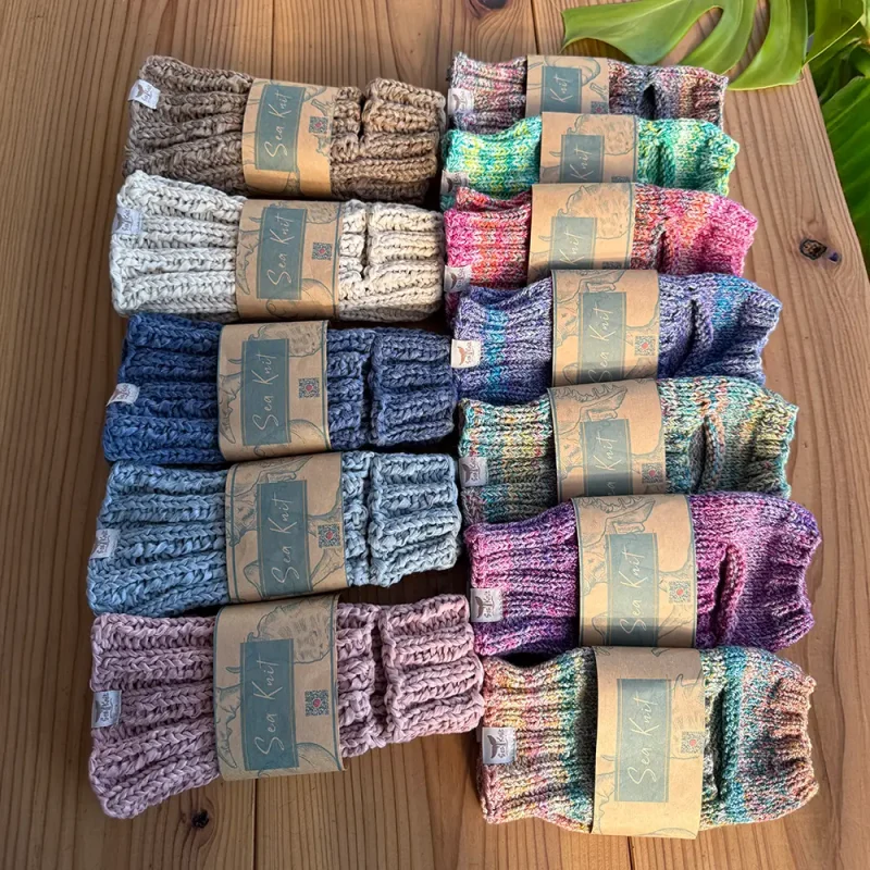 冷えから守るアンクルウォーマーを一足一足手編みで使っています。 履いたまま yogaができます。