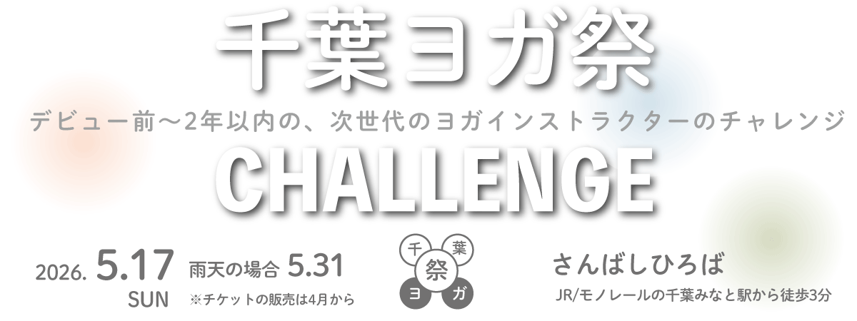 千葉のヨガ文化を高めるために開催している「千葉ヨガ祭」(秋開催)の補完イベントとして、さらに次世代のヨガインストラクターの育成・登壇機会の創出を目的に、新人ヨガインストラクターのみを対象としたヨガイベントです。